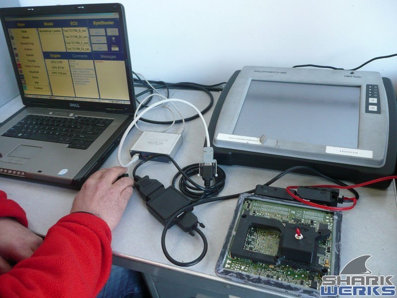 This black on black 05 Turbo S came in for a quick bite including a set of light weight HRE R40 Monoblok wheels and a Stage II performance kit (including the EVOMSit software and an exhaust).