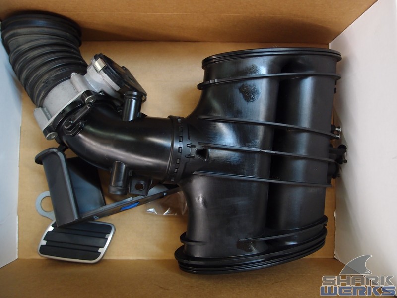 Out comes the intake manifold, factory plenum and throttle body: