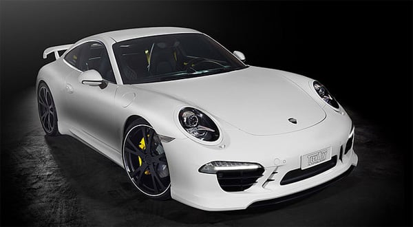 Upright Aerowings in both front air intakes set another racy highlight, applying a new dynamic twin-duct design. Typical TECHART trims in body color upgrade the 911's headlights and side mirrors.