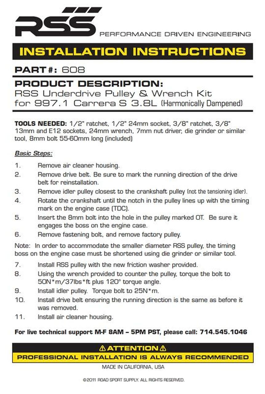 RSS / Road Sport SupplyHarmonically Damped - Underdrive Performance Pulley Kit Including Belt