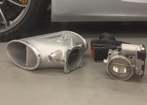 The "Competition" versions of the 981 Plenums upgrades the factory 74mm throttle body to the larger, 82mm throttle body found on the 997 GT3. This Competition version will work with both 3.4L "S" and 2.9L "Non-S" applications.