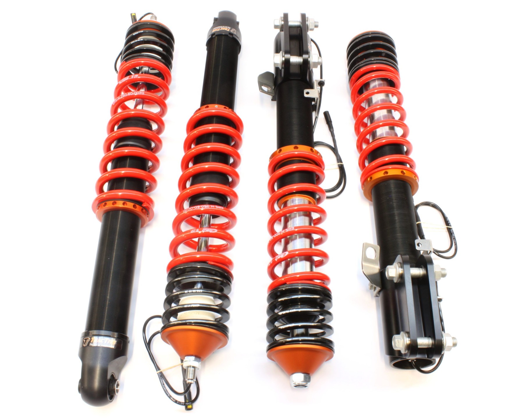 This electronic suspension kit is valved specifically for Road and Track use, with a focus on sufficient comfort for optimal Road use while maintaining sport performance. Each kit is engineered for optimal performance and durability. The dampers are fitted with springs and have an infinite ride height adjustment either through the platforms on the shock bodies or through the separate adjusters.