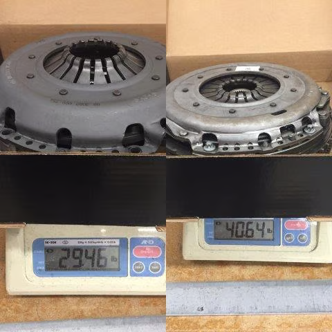 Complete SharkWerks LWF and Clutch Assembly (left) vs Stock (right)
